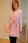 Sukienkowy krój kosmetycznego fartuszka pięknie wysmukla sylwetkę i podkreśla kobiecy styl. Starannie zaprojektowane wykrojenie sprawia, że spódnica pozostaje rozłożysta, lekka i doskonale się układa podczas pracy.