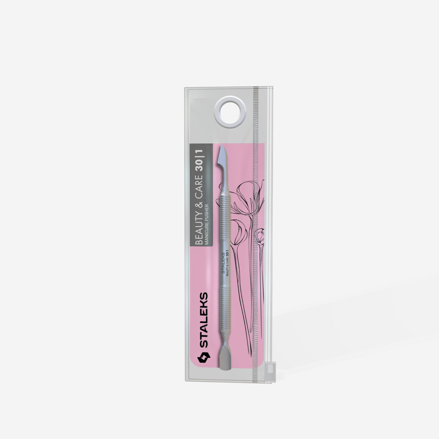- Część robocza „Popychacz”: Używana do podnoszenia i odsuwania naskórka, dopasowuje się do kształtu paznokcia dzięki lekkiemu wygięciu, co zapewnia wygodę i precyzję w pracy.