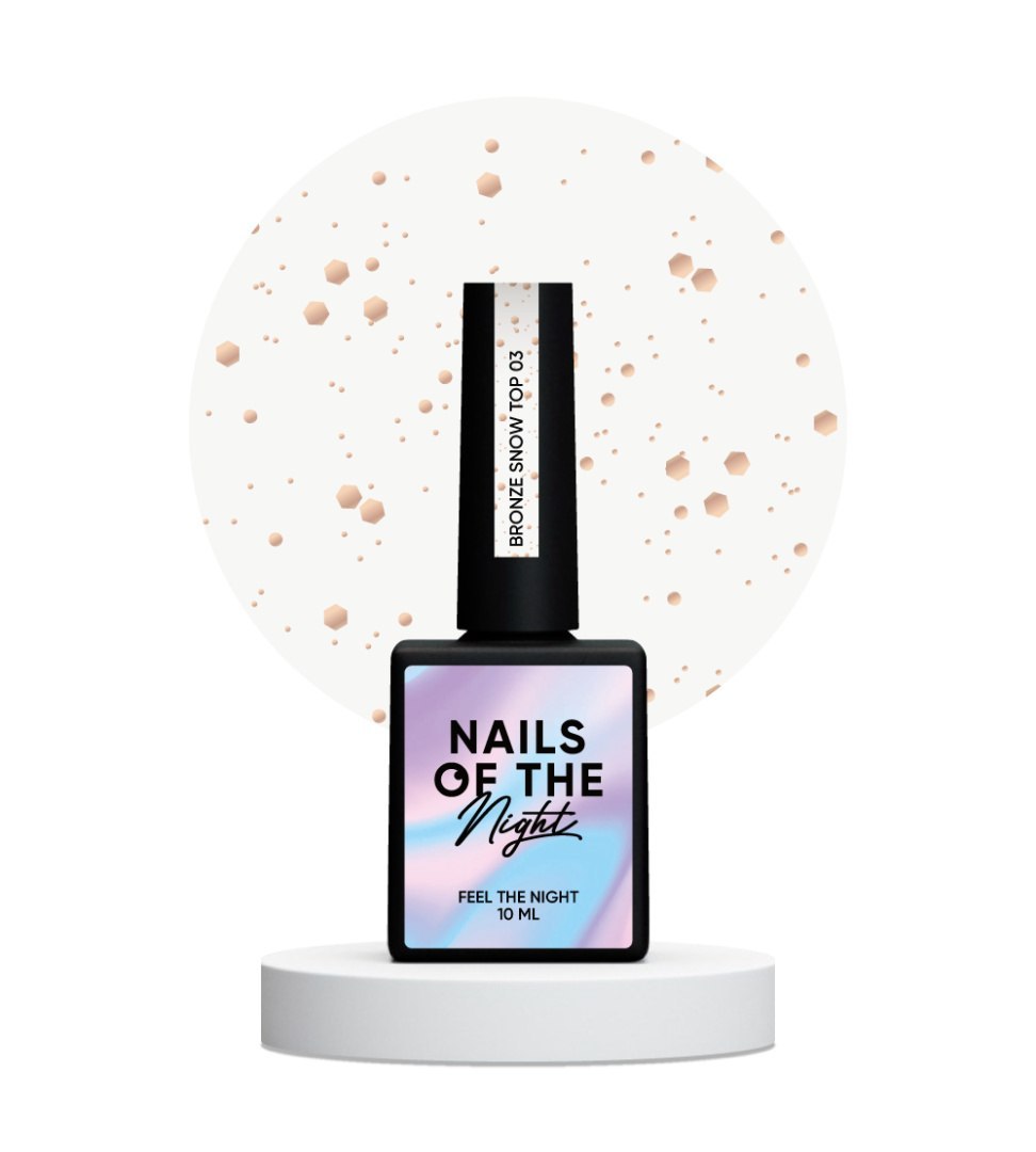 Top Bronze snow to z miedzianymi cząsteczkami który doda każdemu manicure odrobiny magii i blasku, gwarantuje nie tylko niesamowity połysk, ale również trwałość, której szukają profesjonaliści i entuzjastki pięknych paznokci.