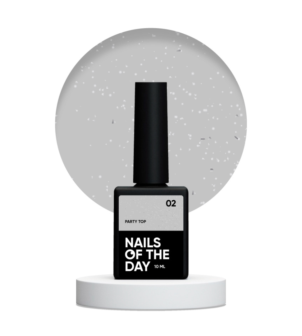 Party top 02 – pzezroczysty top z drobinką, bez lepkiej warstwy i bez filtru UV NAILSOFTHEDAY , 10 ml