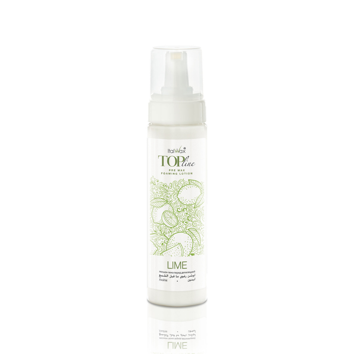 Balsam w piance „Lime” Top Line to delikatny preparat stworzony do przygotowania skóry przed depilacją woskiem. Pianka efektywnie oczyszcza skórę, usuwa resztki kosmetyków, odtłuszcza i osusza powierzchnię, co zwiększa przyczepność wosku i poprawia skuteczność depilacji. Zawarty w składzie ekstrakt z limonki posiada działanie antyseptyczne, a dodatkowo pozostawia na skórze świeży, cytrusowy zapach, który orzeźwia i odświeża.